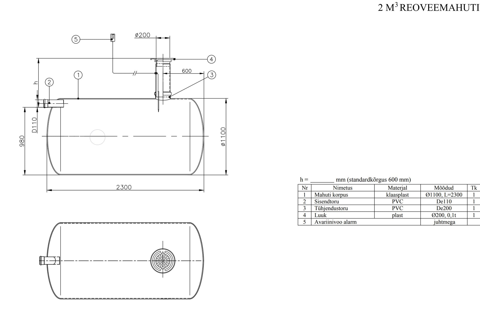 Kogumismahuti 2m³ (∅1100, L = 2300mm)