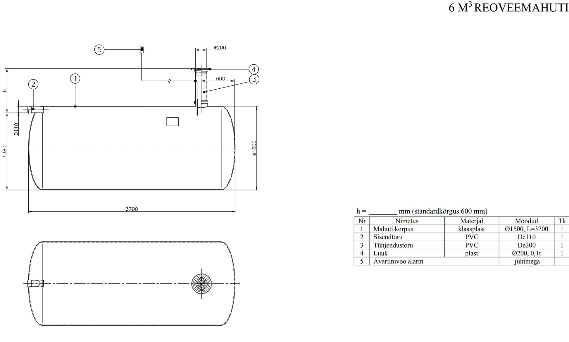 Kogumismahuti 6m³ (∅1500, L = 3700mm)