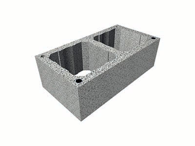 Tugevast kergekaalulisest betoonist valmistatud mantelplokk. Mõeldud kahe lõõriga moodulkorstna ehitamiseks.