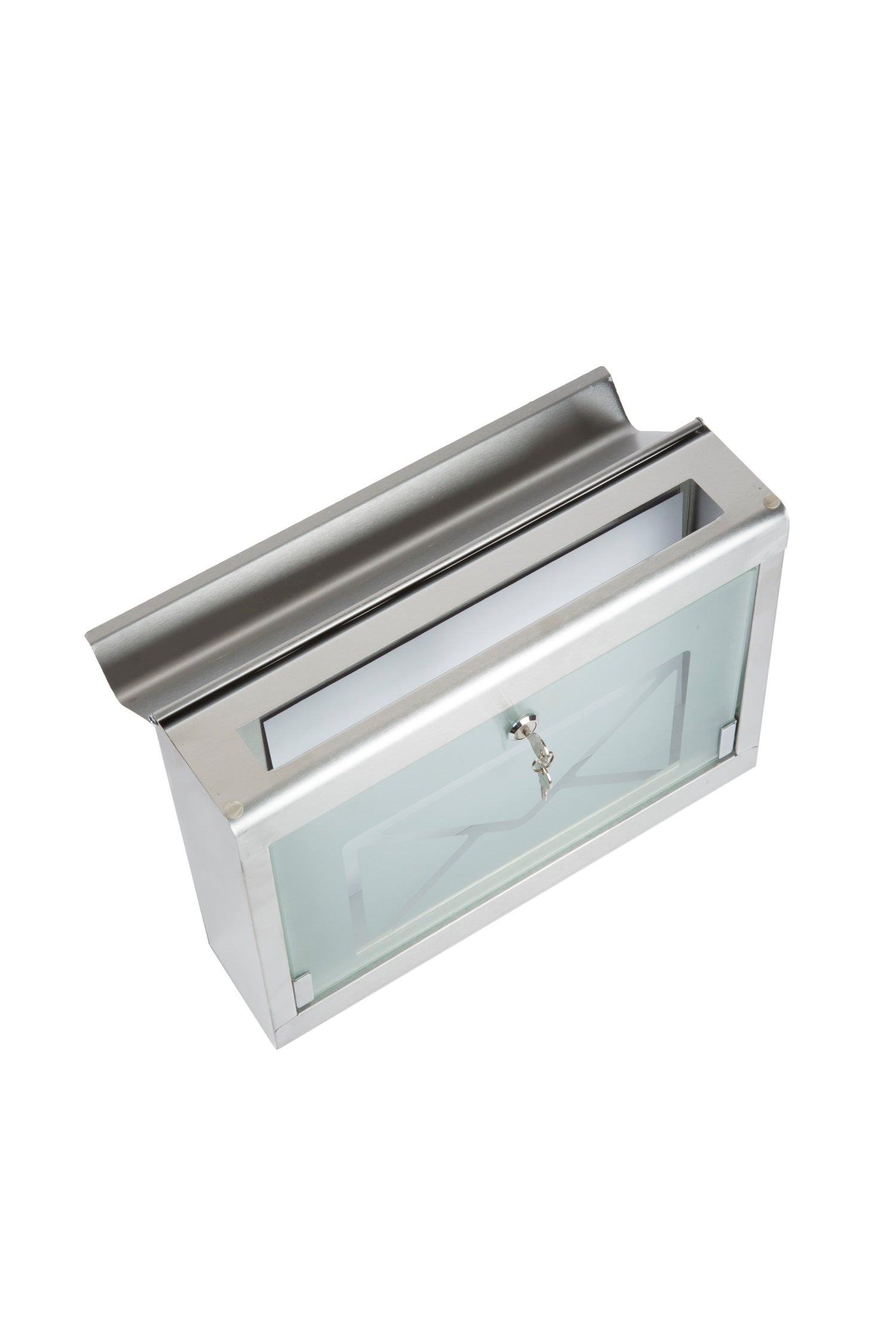 Postkast Klaasiga on pealt avatav poleeritud roostevabast terasest valmistatud postkast, karastatud klaasist luugiga.