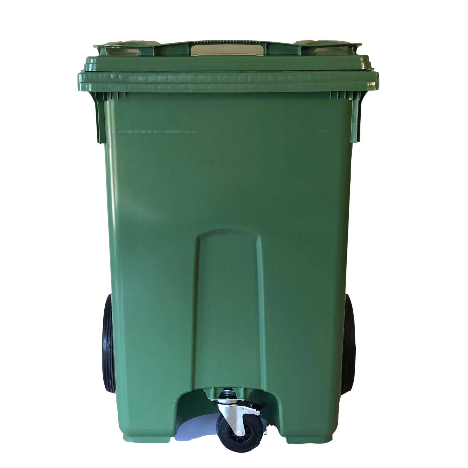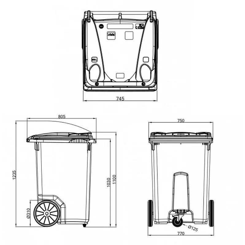 3-rattaline prügikonteiner vastab jäätmevedajate nõuetele ja on sobilik tühjendamiseks jäätmeveokiga.